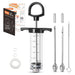 - Only 2 Meat Needles but Enough for All Meats -- It comes with 2pcs sturdy stainless steel meat needles (length: 3inch/7.6cm); Fit both liquid and fine-ground chunky marinades without clogging; Super sharp to pierce all thick meat for marinating (4 times faster than traditional manner). Go well on almost all meat and poultry, like steak, beef brisket, turkey, pork, chicken breast, lamb, fish...